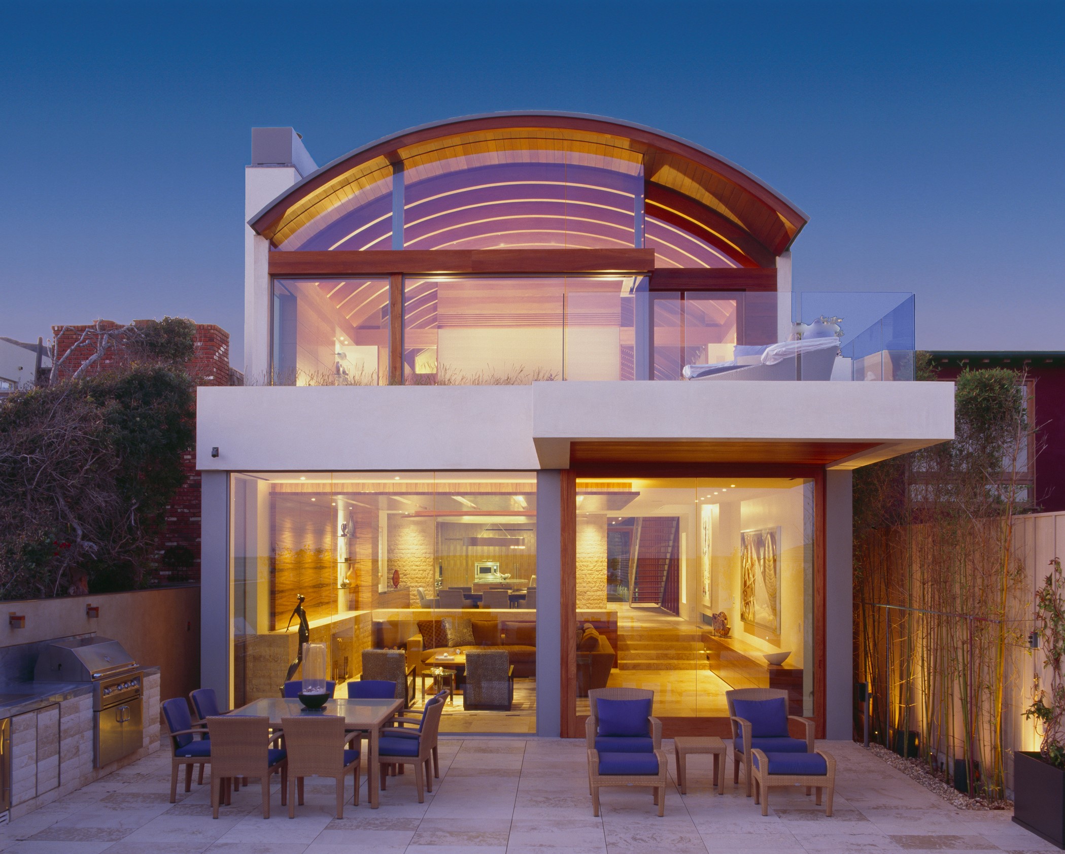 Read MoreThis contemporary beach house is located on a narrow beachfront lot in Malibu, California. A garden separates the main dwelling from a guesthouse. Lighting accentuates the architectural elements at night and provides multiple lighting scenes. The lighting system allows residents to choose among activities, including...
